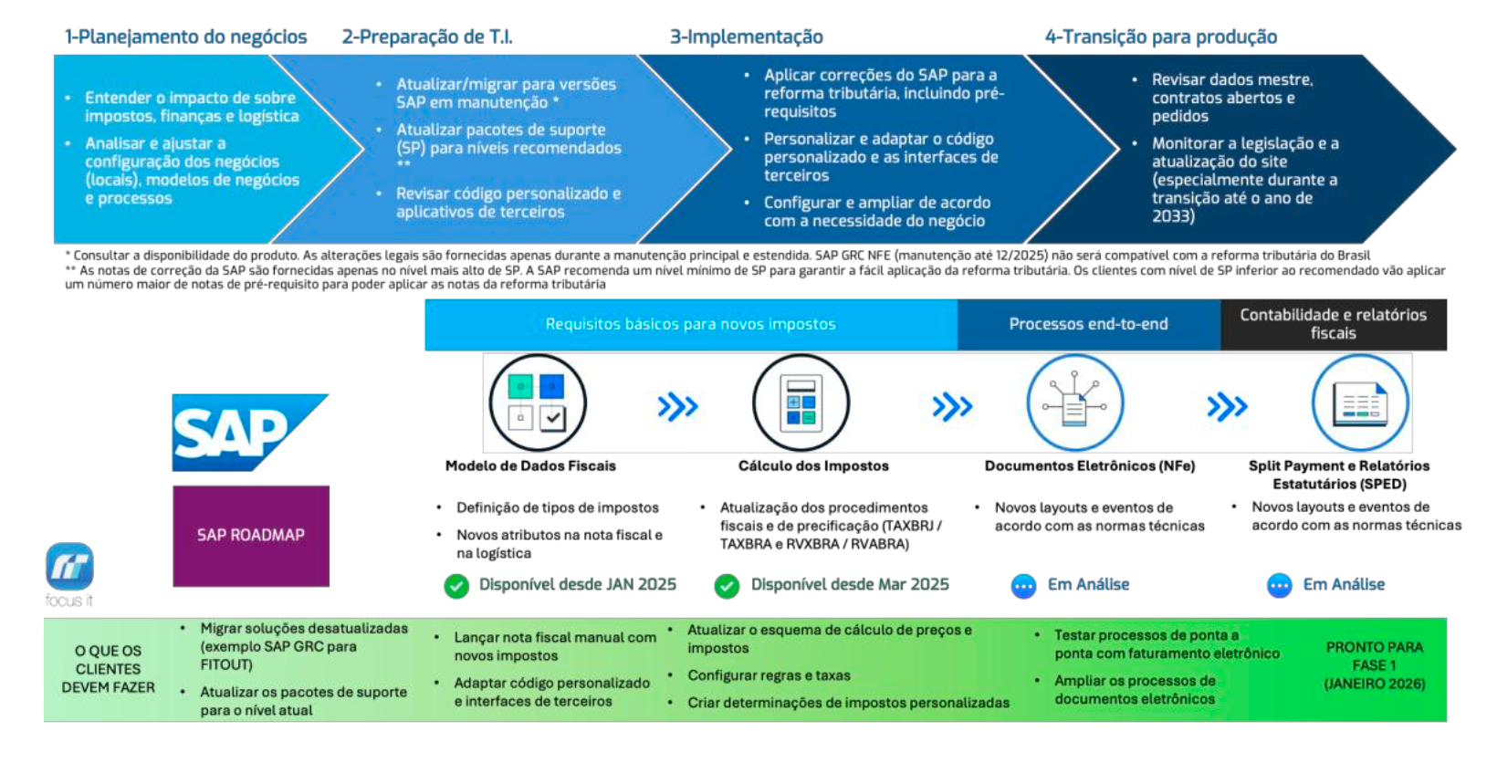 With a team highly specialized in tax compliance projects and extensive experience in SAP environments, FOCUS IT is prepared to guide your company through this transformation process with security, strategic vision, and a focus on results. Our approach goes beyond compliance: we seek to optimize processes and ensure that the company benefits from the transition, with full adherence to legal requirements and operational stability.